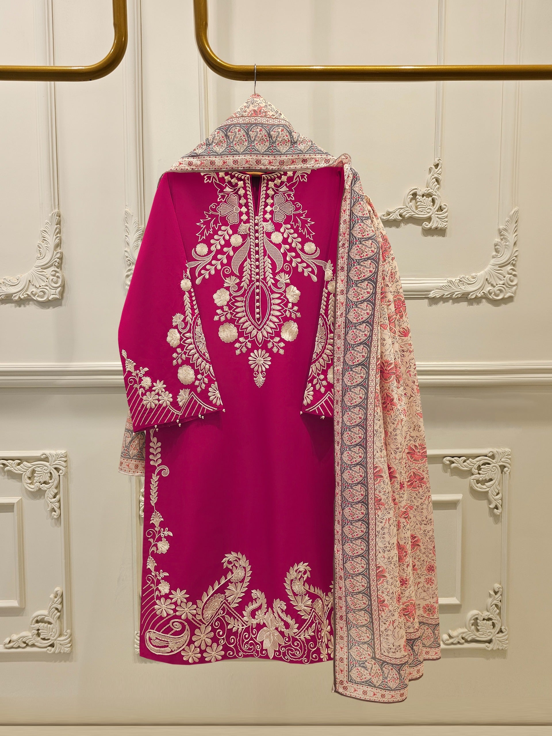 Elevate your summer wardrobe with this beautifully crafted red lawn shirt, featuring intricate Chikan Kari work on the sleeves and daman. Designed for timeless elegance, this piece blends breathable lawn fabric with traditional craftsmanship, perfect for festive occasions or casual sophistication. Pair it with pants for a complete look.