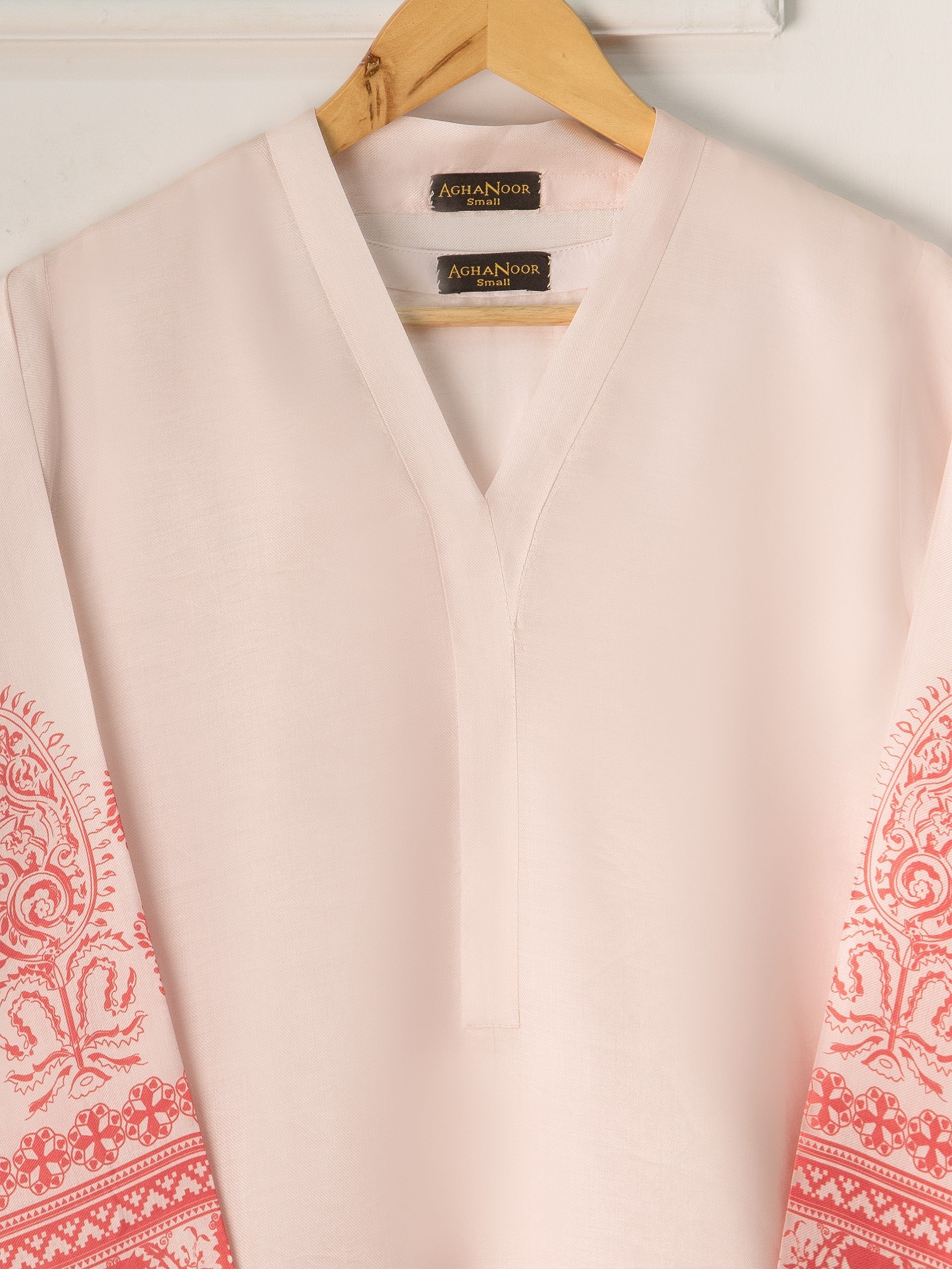Embrace the festivities of the season in style with our pink two-piece accented with intricate print. Our exquisite suit is crafted in marina fabric, printing elegance and grace. The ensemble is paired with dupatta.