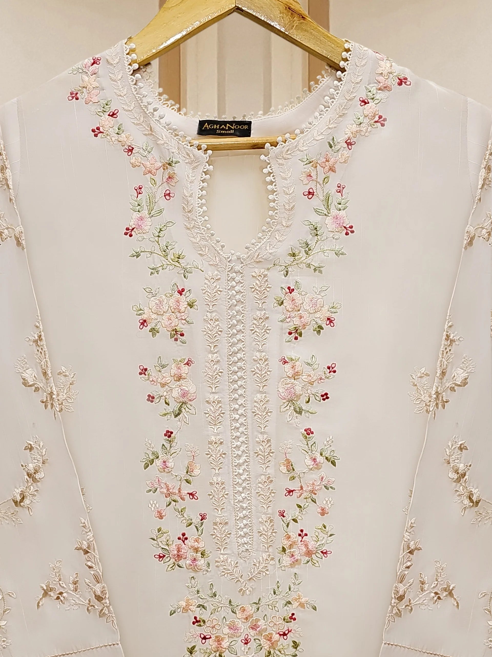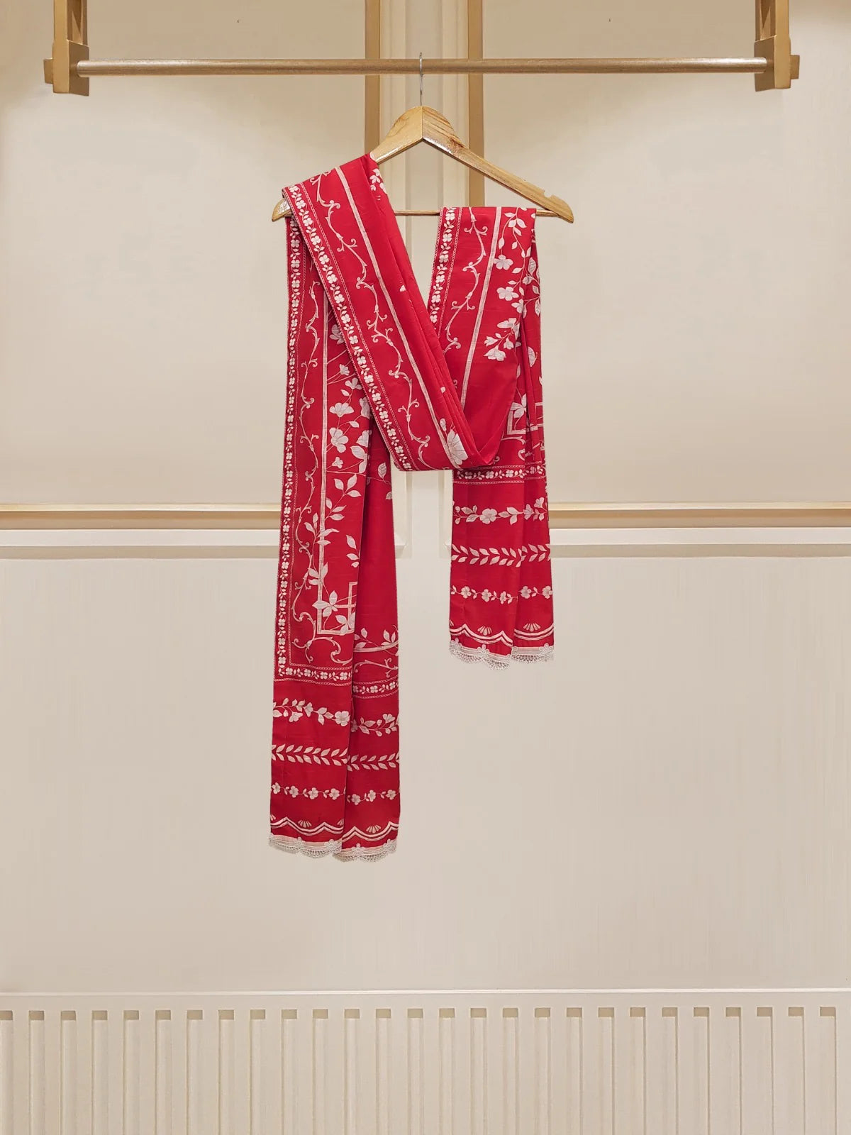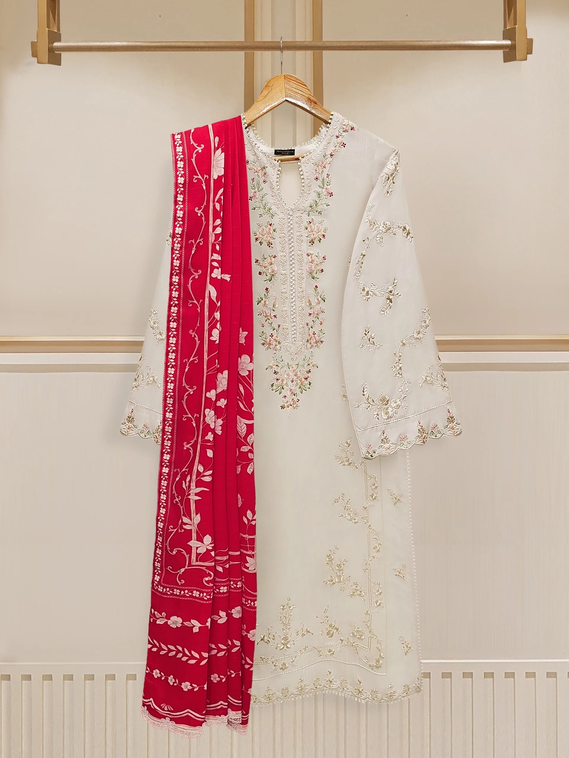 Introducing our vibrant and fashionable embroidered jacquard shirt with dupatta perfect for adding a touch of elegance and style to your wardrobe. Made from high-quality Cambric fabric, this shirt offers comfort and breathability, making it an ideal choice.
